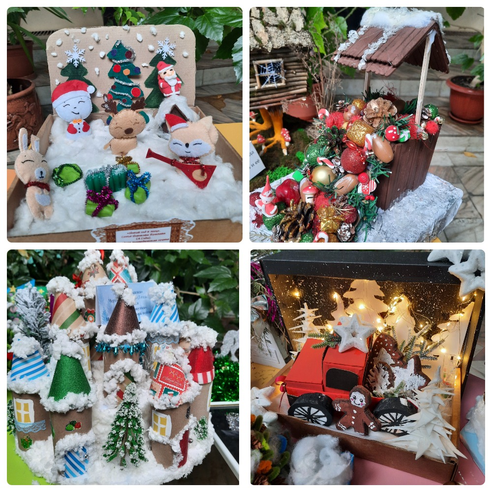В канун Нового 2026 года в детском саду прошел конкурс совместных творческих работ детей и родителей "В гостях у сказки". Участниками конкурса были представлены новогодние поделки по четырем номинациям: "Символ года 2026", "Сказочный персонаж", "Баба Яга и её друзья", "Зимний пейзаж". Разнообразные ёлочки, забавные Дедушки Морозы, весёлые снеговики, заснеженные домики - украсили зимний сад детского учреждения. Каждая работа имела свою изюминку и оригинальность, отличалась замыслом, необычностью и душевной теплотой.