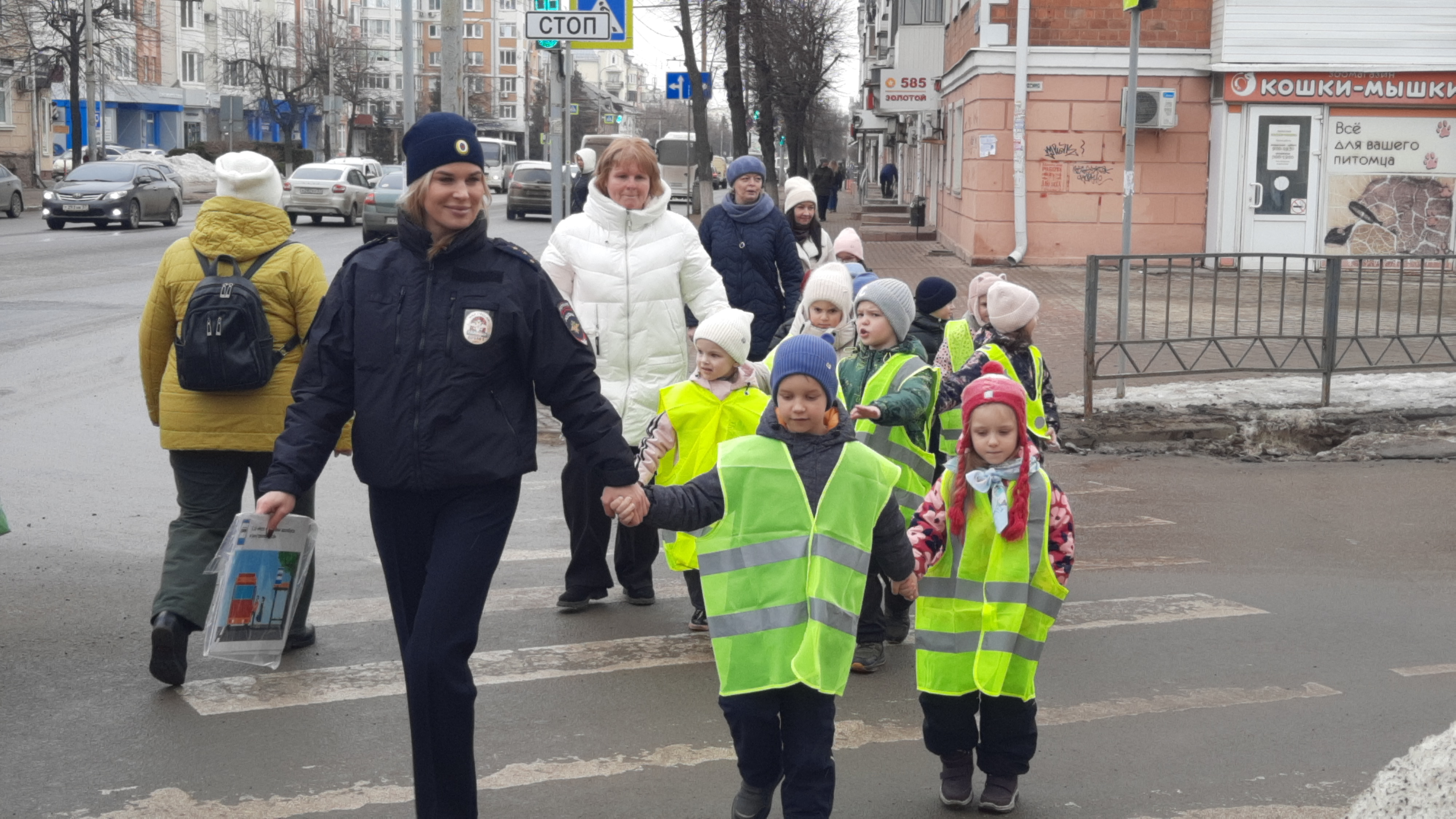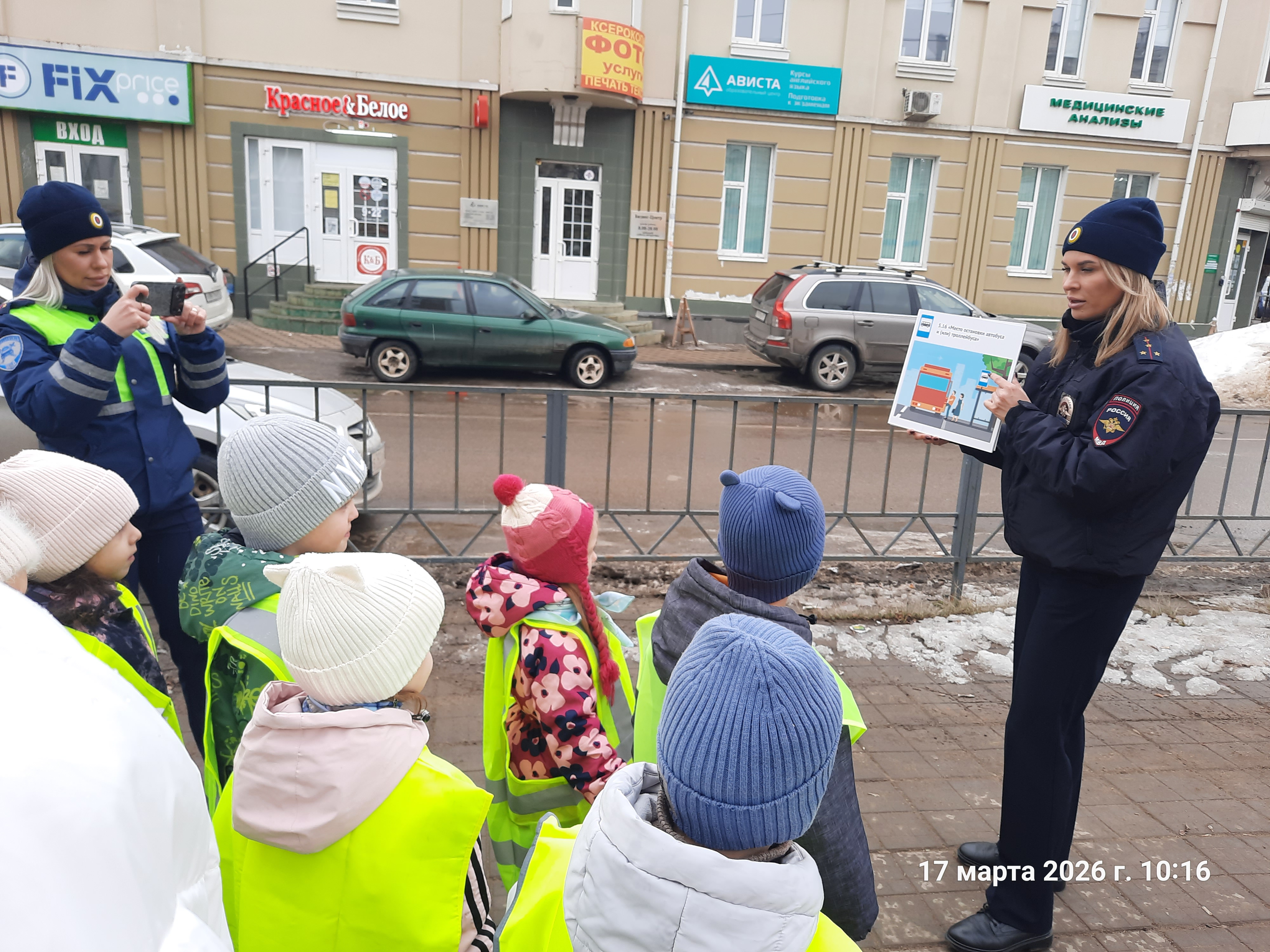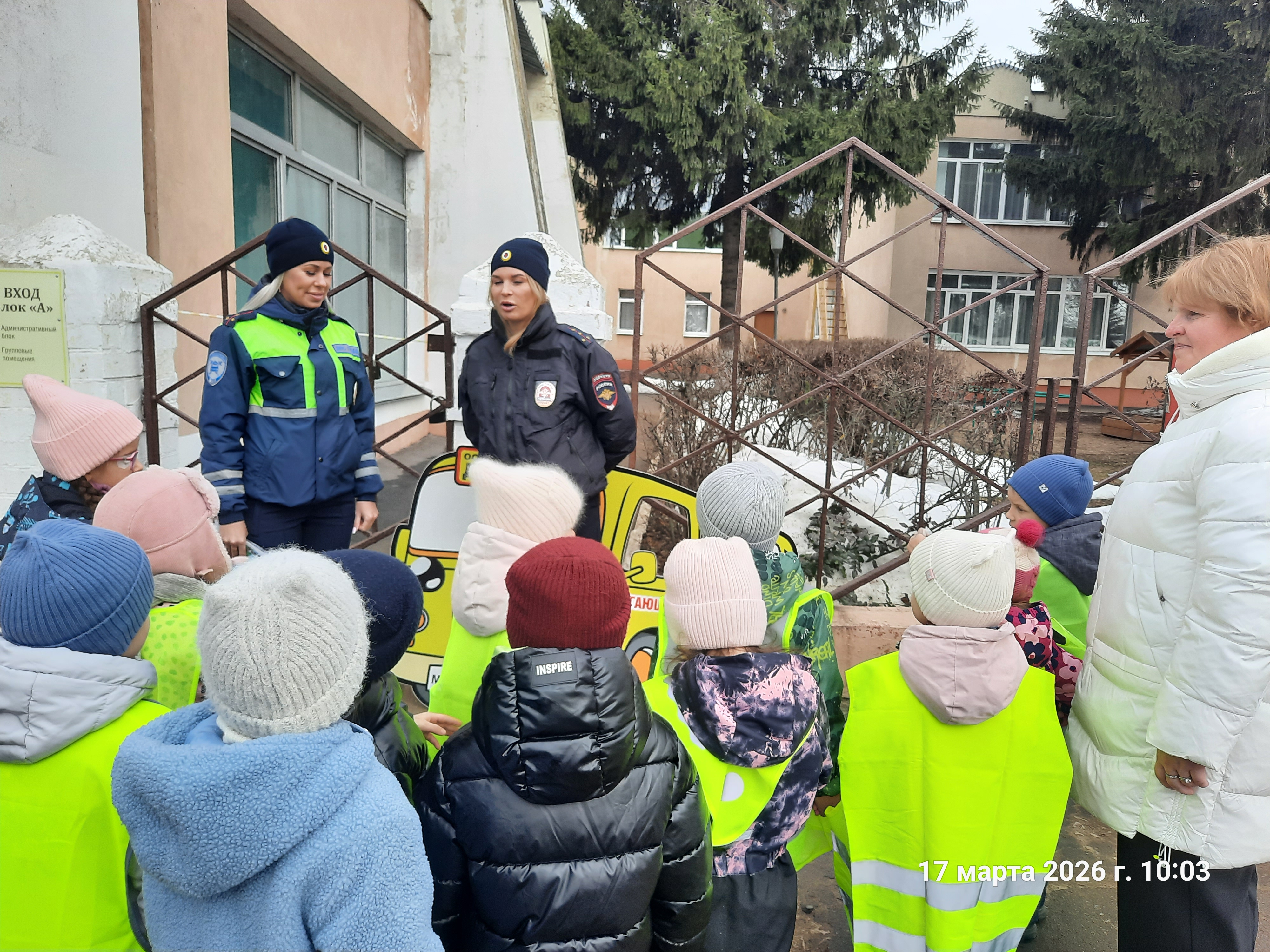 Перед началом прогулки автоинспекторы провели с детьми краткий инструктаж: напомнили о правилах перехода проезжей части, значении дорожных знаков и важности использования световозвращающих элементов на одежде.