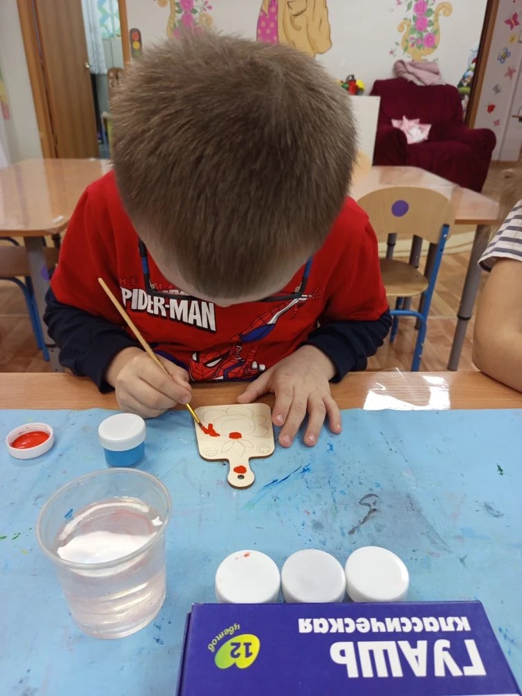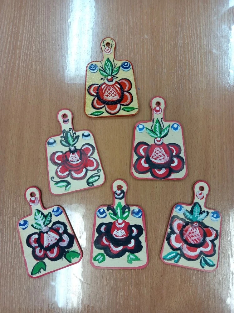 Воспитанники подготовительной группы " Светлячок", на занятия художественно-эстетического развития попробовали себя в роли мастеров росписи по дереву. Но прежде чем приступить к работе, они узнали о истории Городецкой росписи и ее основных элементах, и цветах, которые используются в росписи. И применили полученные знания на практике, расписав свои дощечки используя следующие элементы : городецкая роза, листики, бутон.