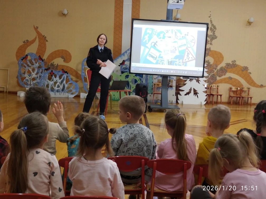 Регулярные встречи с инспекторами помогают ребятам ближе познакомиться с данной профессией, в активном диалоге обсудить соблюдение правил дорожного движения, важность использования светоотражающих элементов и решить проблемные ситуации, которые могут возникнуть на дороге.