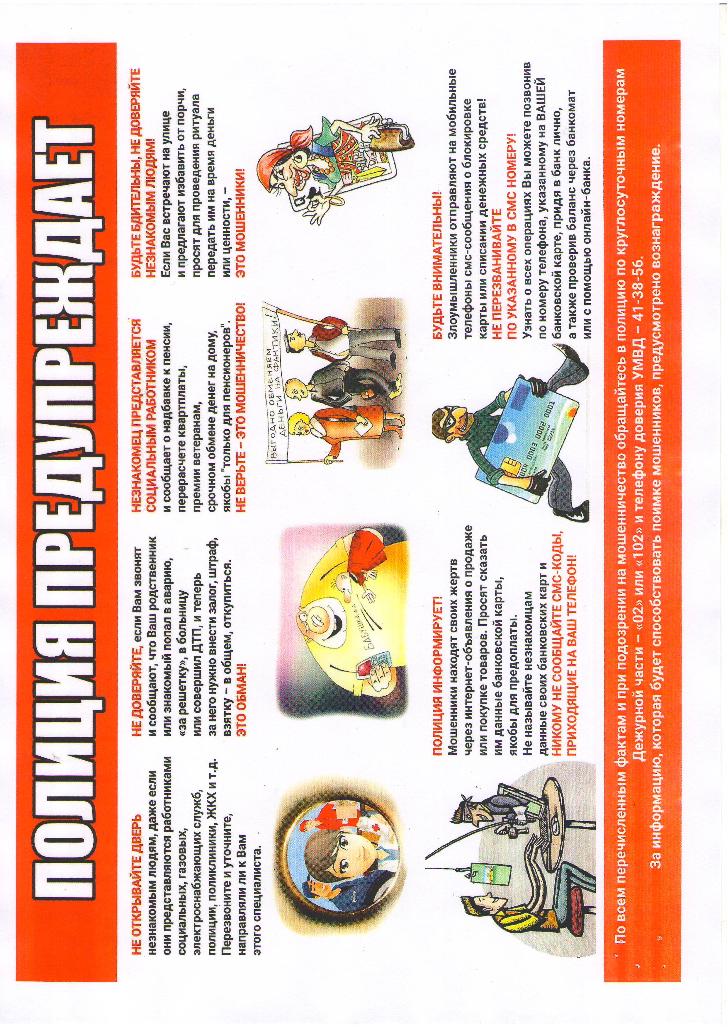 - ознакомиться с памяткой по профилактике мошенничества ("Полиция предупреждает");